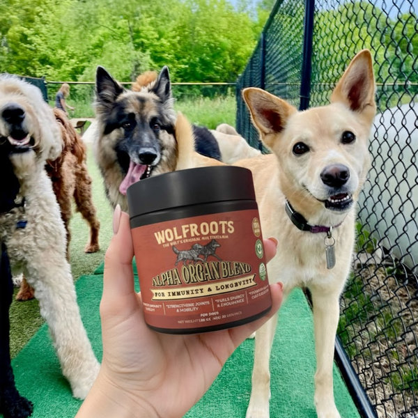 WolfRoots Alpha Organ Complex is safe for dogs of all breeds and sizes. It’s especially helpful for aging dogs, dogs with skin or digestion issues, or any pup fed primarily on kibble. (Not intended for human use.)