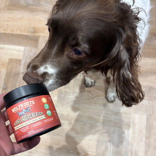 WolfRoots Alpha Organ Complex works by giving your dog the same nutrient-dense organs their wolf ancestors thrived on. Each scoop fuels immunity, joints, energy, and digestion with Vitamin A, CoQ10, Taurine, and enzymes — things missing from modern kibble.